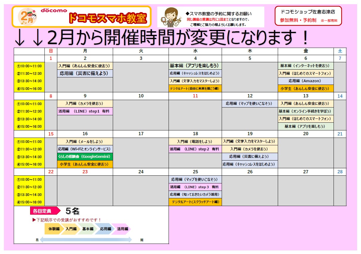 教室の予約状況確認・ご予約はお電話かドコモスマホ教室公式HPにて承っております。